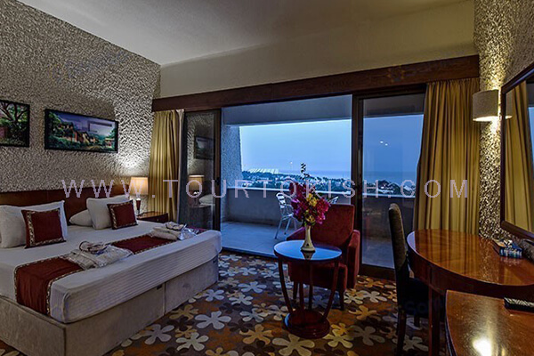 اتاق های هتل، ظاهری شیک و لوکس دارند؛ بسیار بزرگ، دلواز و پر نور هستند و با امکانات رفاهی خوبی نیز تجهیز شده اند. رستوران های سنتی، مدرن و سفره خانه سنتی هتل با داشتن فضاهایی زیبا و خاص و غذاهای با کیفیت، نیاز خورد و خوراک مسافران تور کیش را به خوبی پاسخ می دهند.